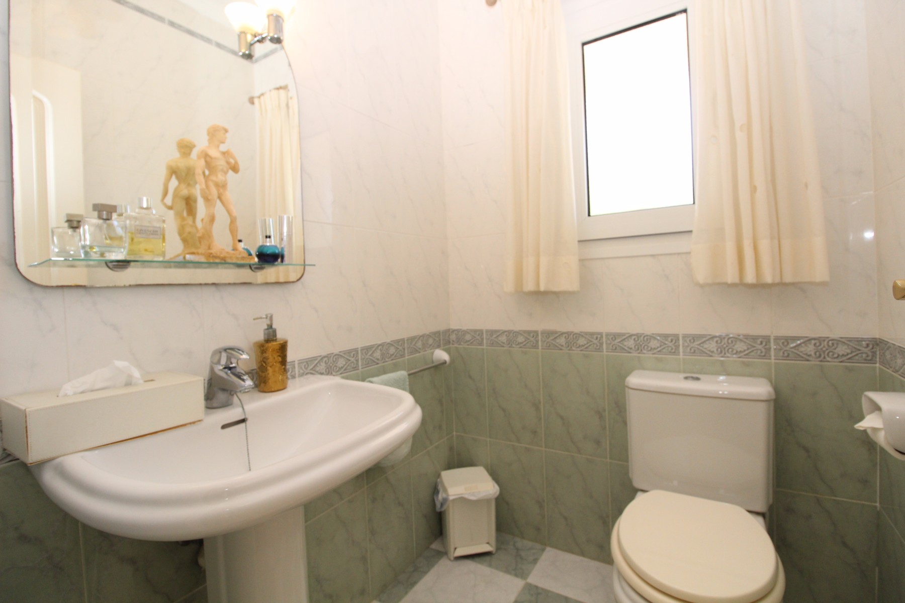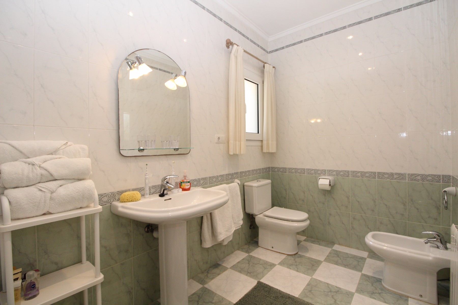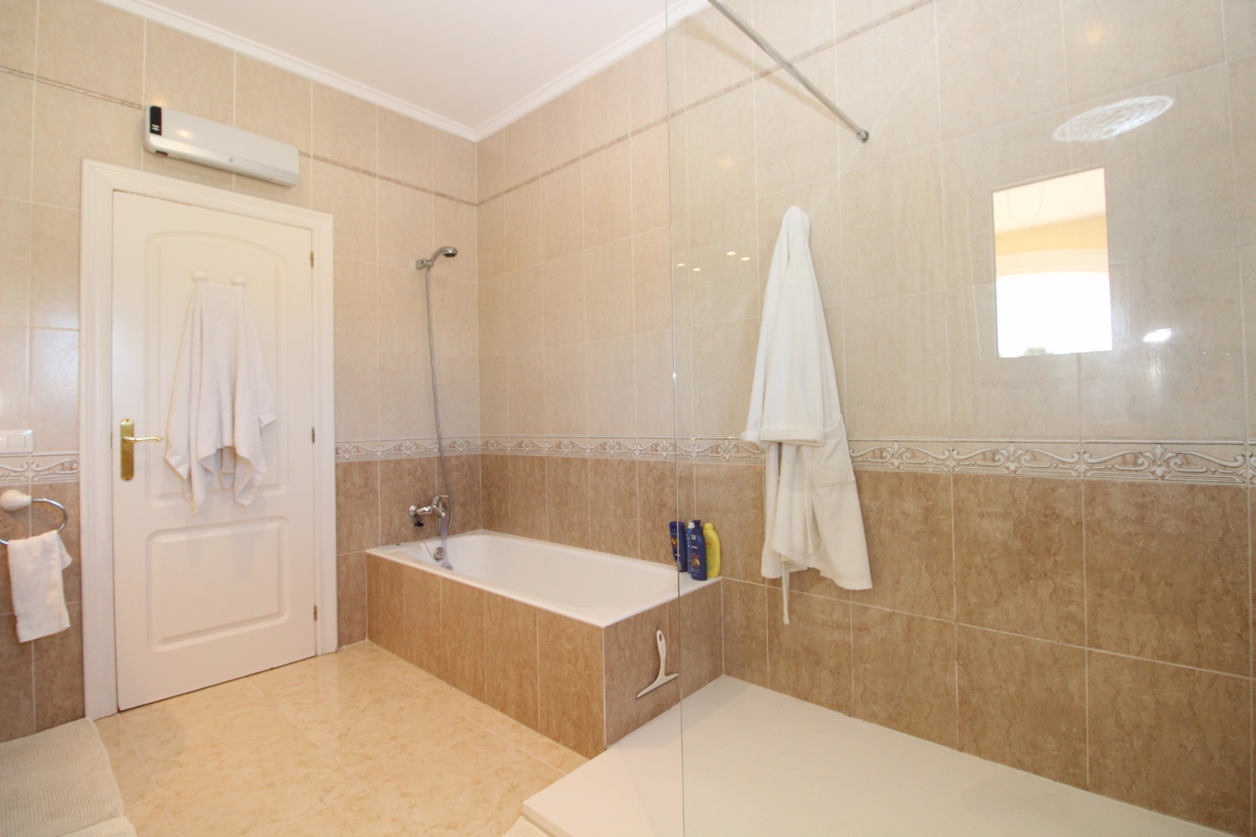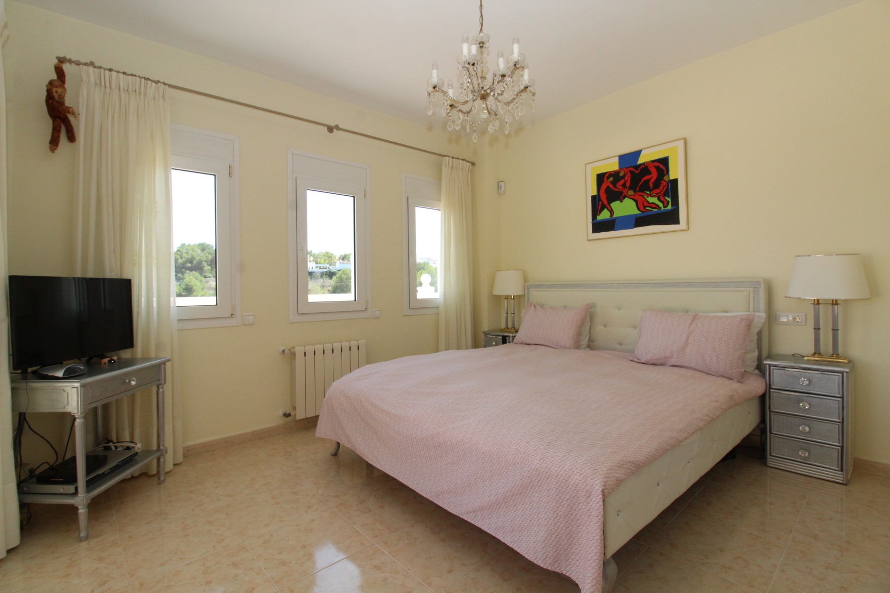 Discover this exceptional villa, ideally located just a 5-minute walk from both the beach and the village in Moraira. Upon entering the beautiful foyer, you will be greeted by an impressive entrance with double doors leading to the spacious living and dining room, adorned with a marble fireplace mantle with a gas fireplace and a custom-made wall unit, offering both comfort and elegance. A sliding door provides access to the covered terrace, seamlessly blending indoor and outdoor living. To the left of the foyer, a hallway leads to the fully equipped kitchen with ceramic hob, fridge-freezer, and dishwasher. From the kitchen, you can access the covered terrace and another terrace. This hallway also houses the utility room with washing machine and a guest toilet. To the right of the foyer, you will find built-in wardrobes, a storage room, a bathroom with bathtub, a spacious guest room with a sitting area and access to a covered terrace, as well as another large bedroom with ample closet space and an en-suite bathroom with bathtub. The impressive marble staircase from the foyer leads to the upper floor where the master bedroom awaits, complete with a walk-in closet and an en-suite bathroom with walk-in shower and bathtub. This bedroom offers access to a large covered and open terrace, ideal for enjoying the views. Step into the luxury lifestyle through the covered terrace on the ground floor, featuring a lounge and barbecue area complete with dining table, all overlooking the expansive 6 x 12m swimming pool. Surrounding the pool is a large south-facing terrace, with plenty of space for multiple sun loungers, ensuring relaxation under the Mediterranean sun. Access to the spacious garage, equipped with an automatic sectional door, is seamlessly facilitated through the automatic entrance gate. Additionally, you can enjoy the convenience of an outdoor shower. There is also a technical room for the pool. This beautiful property is equipped with gas central heating (gas tank), providing year-round comfort, along with air conditioning for added convenience. Take advantage of the benefits of double glazing and automatic shutters in the bedrooms, providing both insulation and security. LED recessed lighting adorns the interior, creating a welcoming atmosphere. Effortlessly control the pedestrian gate, automatic gate, and garage door from the house. Furthermore, you can rest assured knowing that the property is secured with a connected alarm system. To promote both safety and aesthetics, the entire plot is illuminated with outdoor lighting, while the villa is embraced by carefully maintained Mediterranean gardens, adorned with mature trees. Enjoy the beauty of nature and the proximity to the village and beach, making this property a serene oasis in Moraira. Contact us for an exclusive viewing and experience firsthand the unparalleled luxury and tranquility that this property has to offer. We look forward to welcoming you and helping you find your dream home in Moraira.