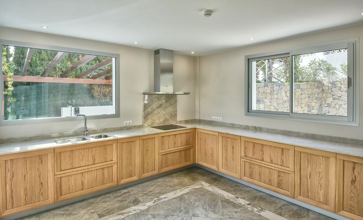 This magnificent property is divided into three spacious floors. On the main floor we find a large fully equipped kitchen, the living/dining room opens through large windows to the infinity pool and relaxation area with jacuzzi. The junior suite has direct access to the pool area.