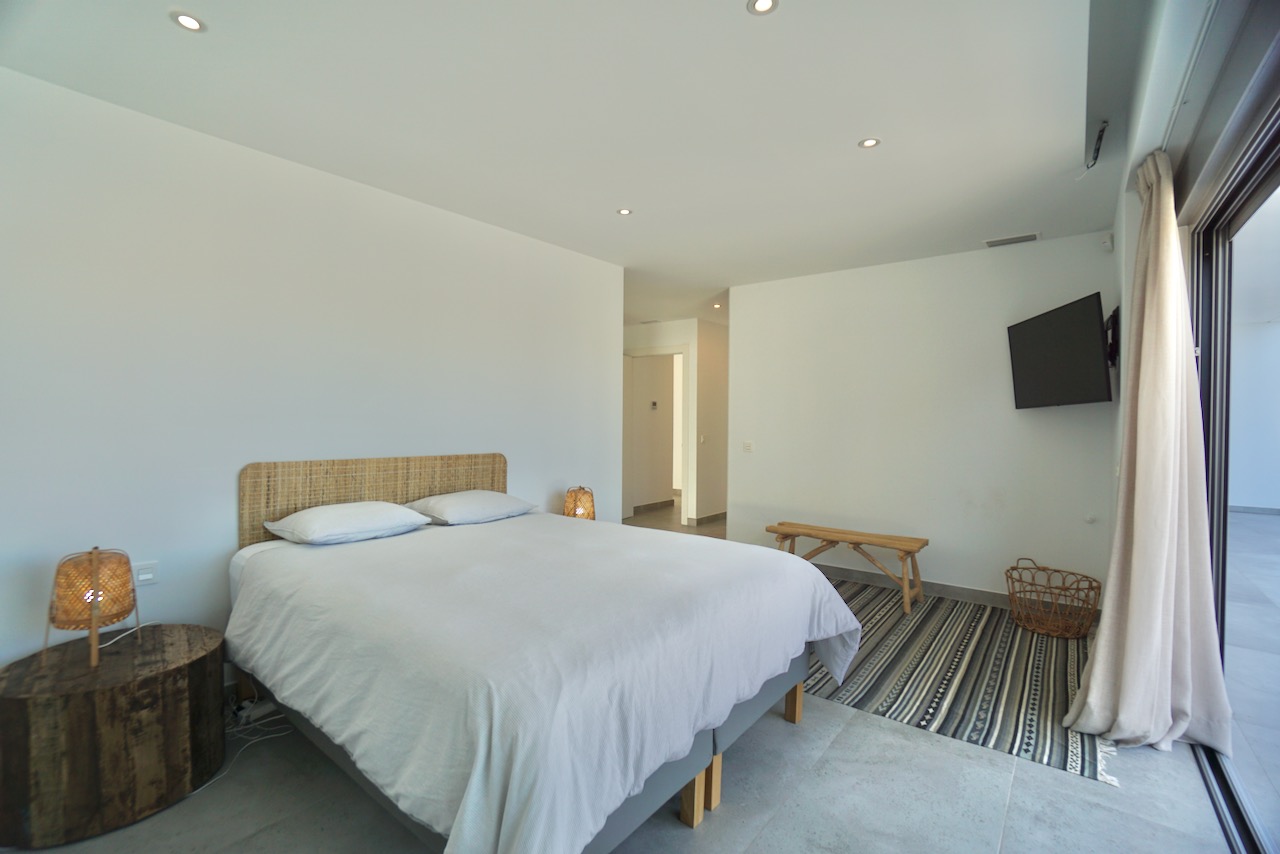 Key features: Modern villa of 201915-minute walk to La FusteraSea view Living room, kitchen and pool on the same levelFlat plot Heated pool with electric coverGarage Storage/laundry roomCentralised air conditioning Solar panelsTourist licence